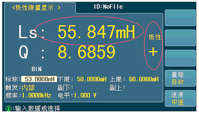 在極性測量界面,可設(shè)定:標(biāo)稱值,Ls下限值,Ls上限值,Q下限值,Q上限值,